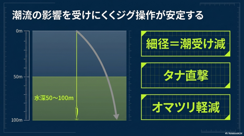 潮流の影響を受けにくくジグ操作が安定する