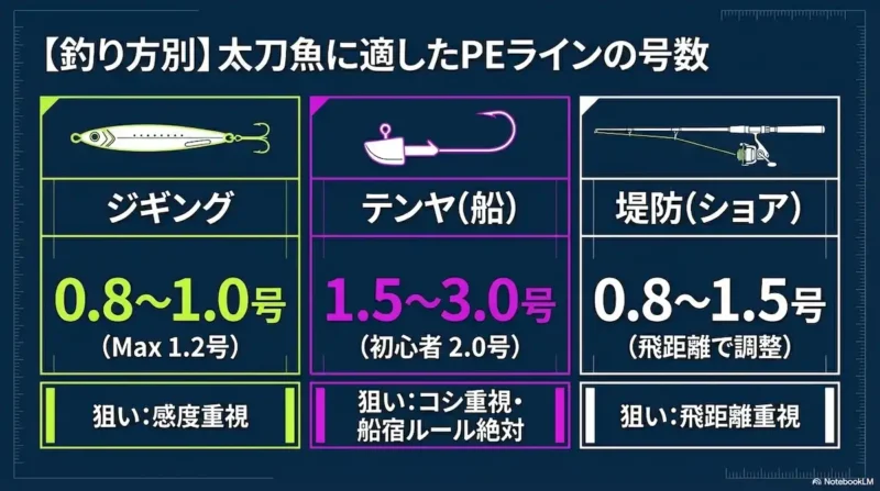 タチウオジギングのPEは何号がよいですか?