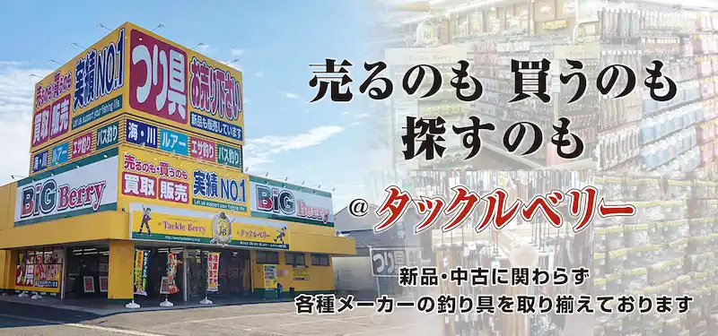 | タックルベリー 湘南本店 | 中古釣具シェアNo.1。在庫の鮮度を重視。WEB宅配買取・通信買取の送料、返送料無料。 | 店頭買取、WEB宅配買取、通信買取、出張買取 | 査定無料。宅配買取の送料・返送料店舗負担 | https://www.tackleberry.co.jp/ |